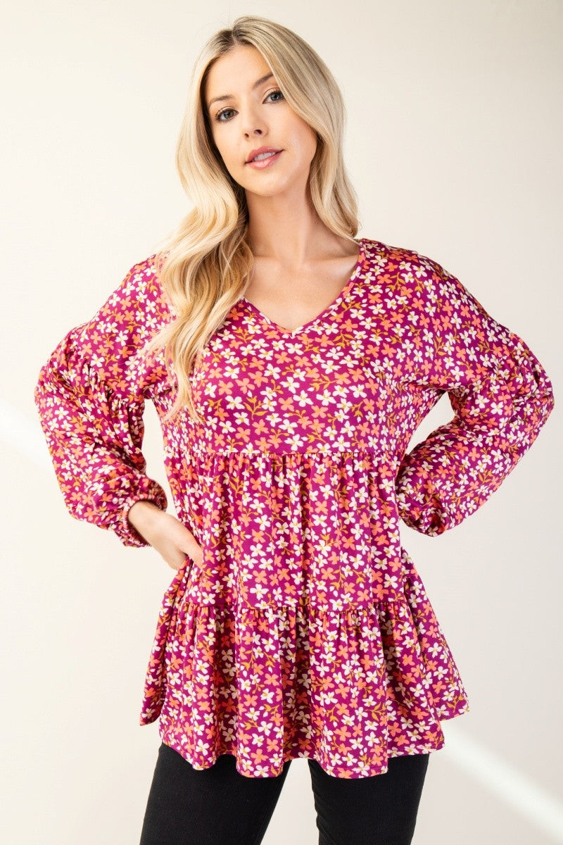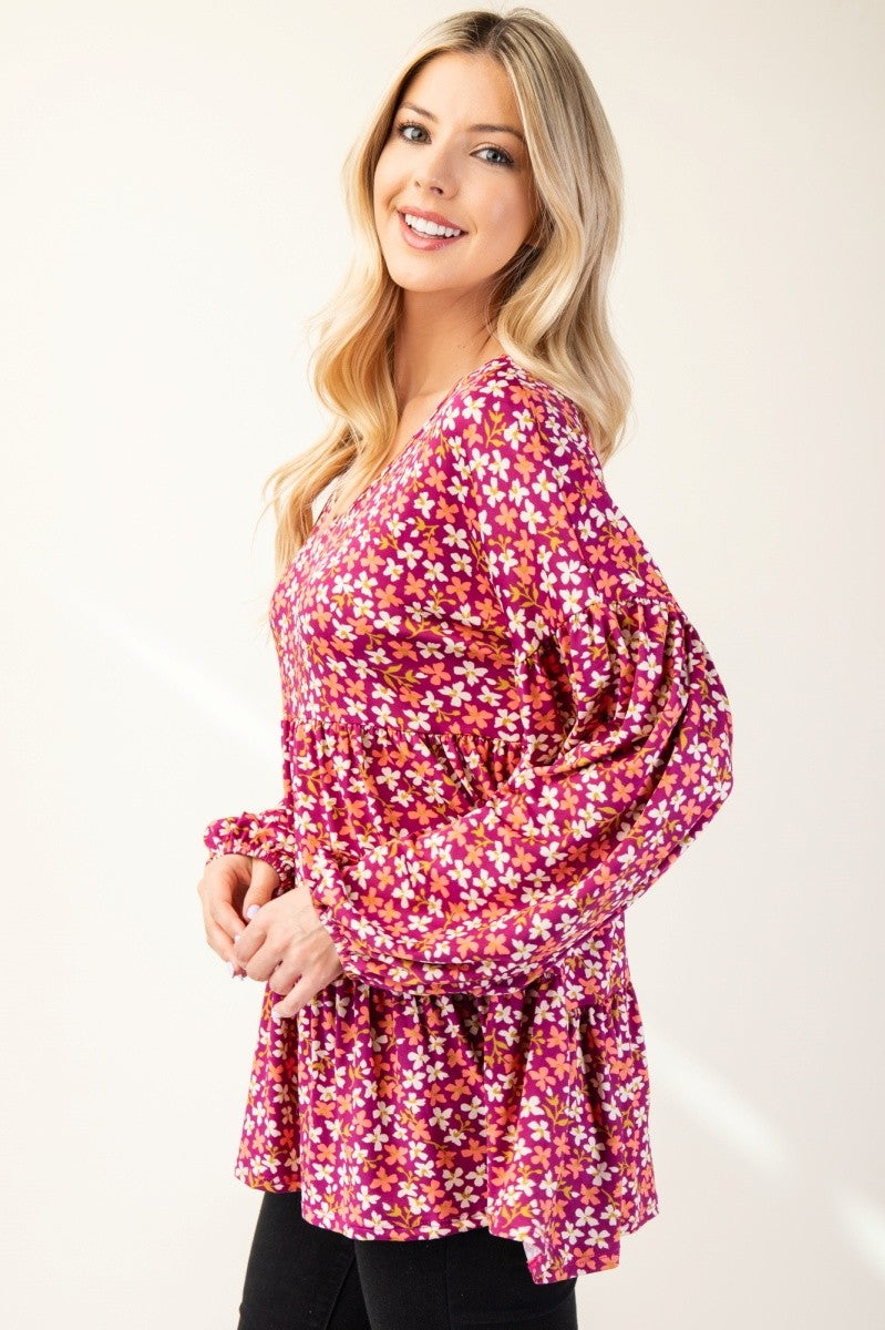 This Floral V-Neck Balloon Sleeve Blouse is inspired by a beautiful floral pattern for a romantic and fresh atmosphere. The V-neck design shows the graceful temperament of women, and the balloon sleeve design adds a hint of playful and fashionable sense. Whether it is paired with jeans or skirts, it can show a sweet and stylish style. This shirt is perfect for many occasions and gives you a charming flower charm in your daily life.