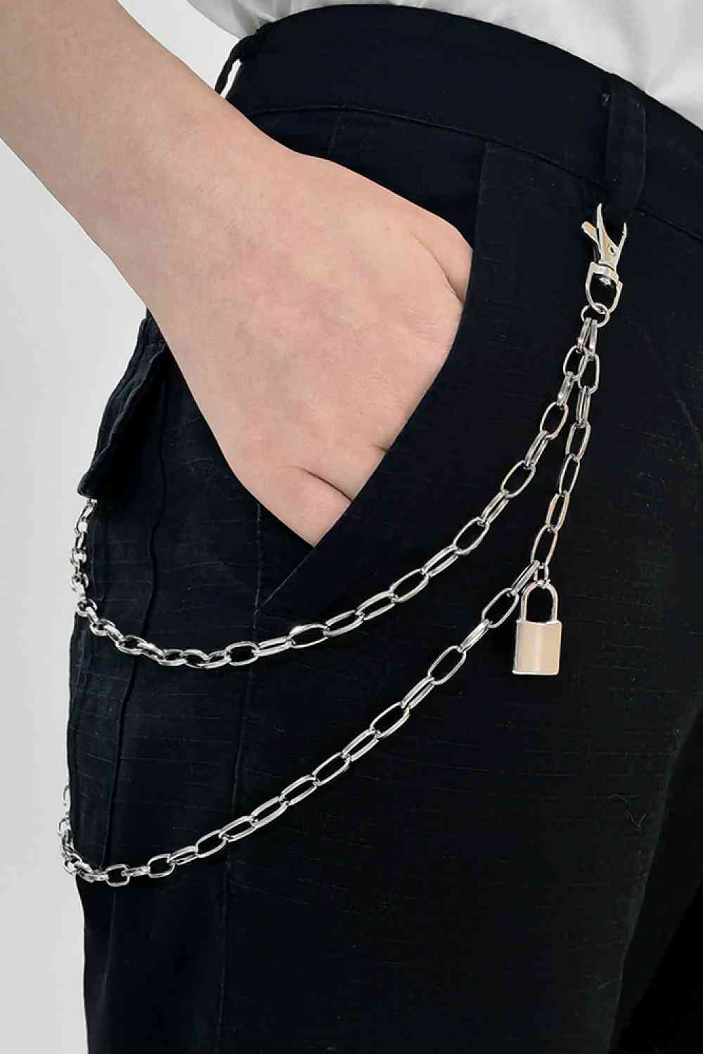 Double Layered Iron Chain Belt with Lock Charm