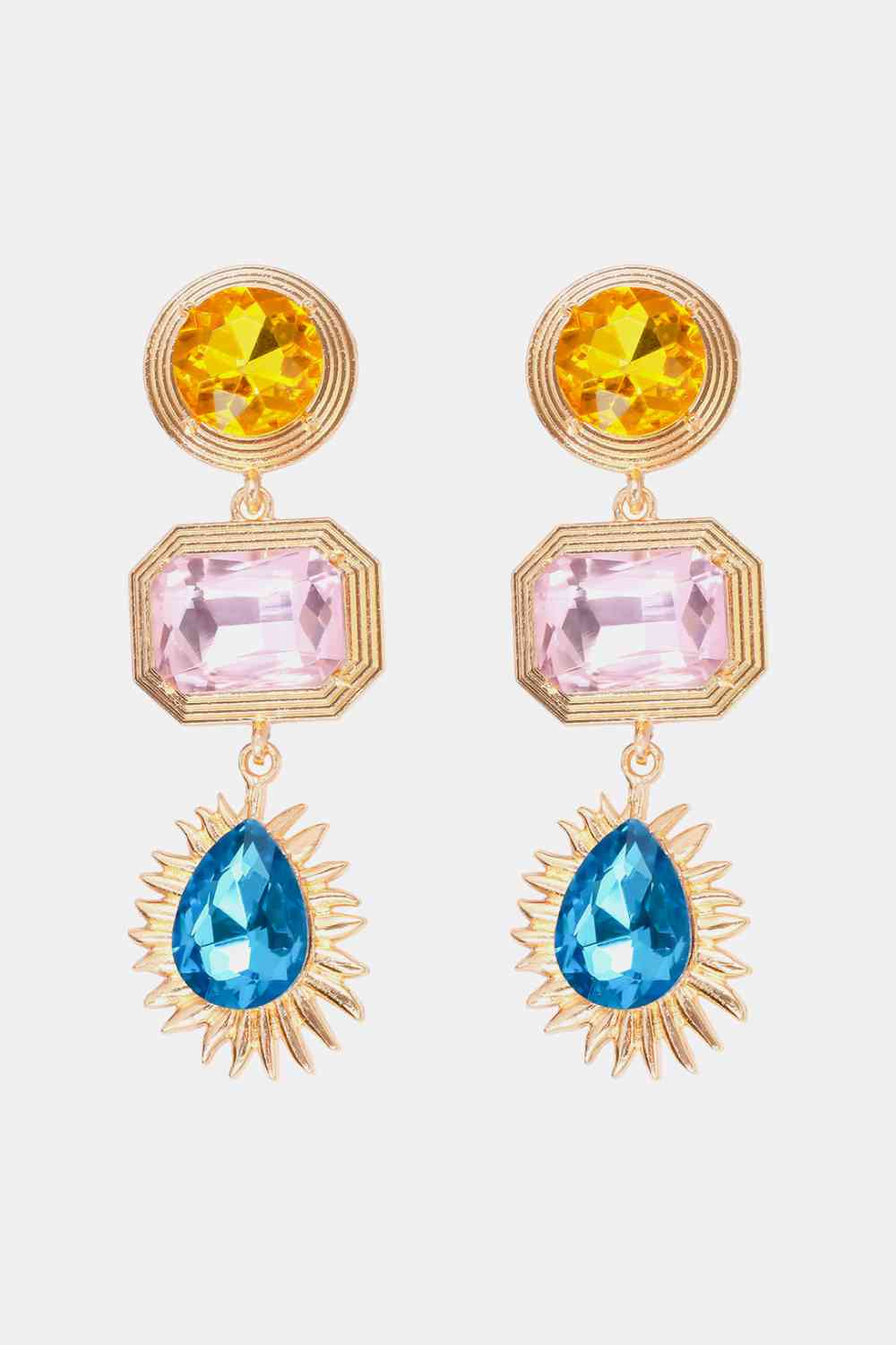 Geometrical Shape Zinc Alloy Frame Glass Dangle Earrings