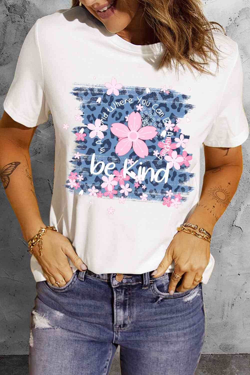 Leopard Floral Graphic Round Neck Tee