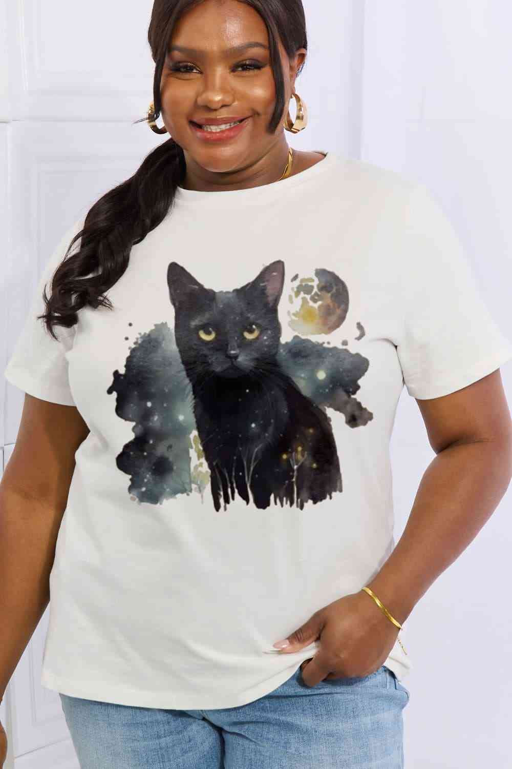 Simply Love Full Size Black Cat Graphic Cotton Tee