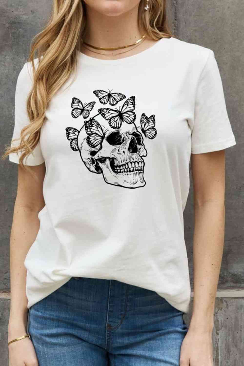 Simply Love Full Size Butterfly Skull Graphic Cotton Tee