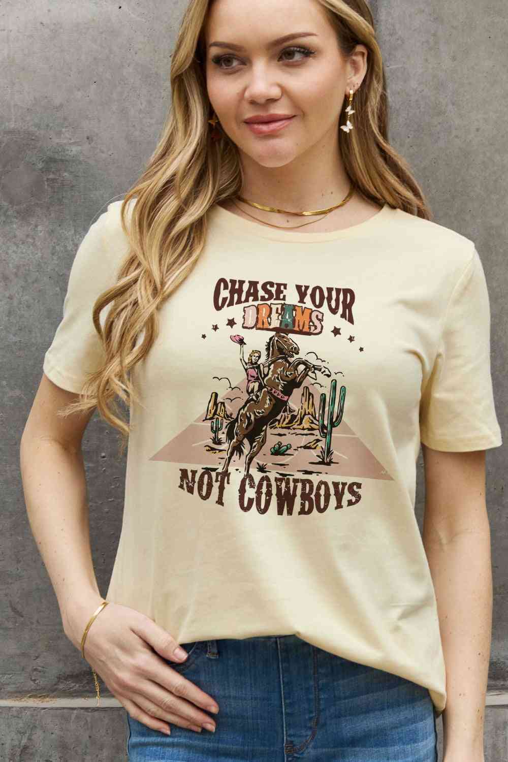 Simply Love Full Size CHASE YOUR DREAMS NOT COWBOYS Graphic Cotton Tee