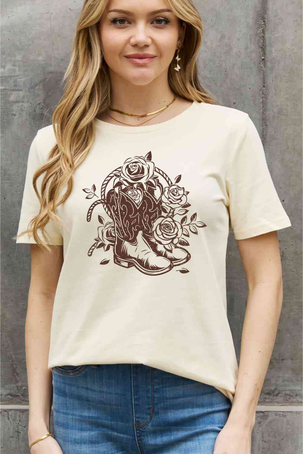Simply Love Full Size Cowboy Boots Flower Graphic Cotton Tee