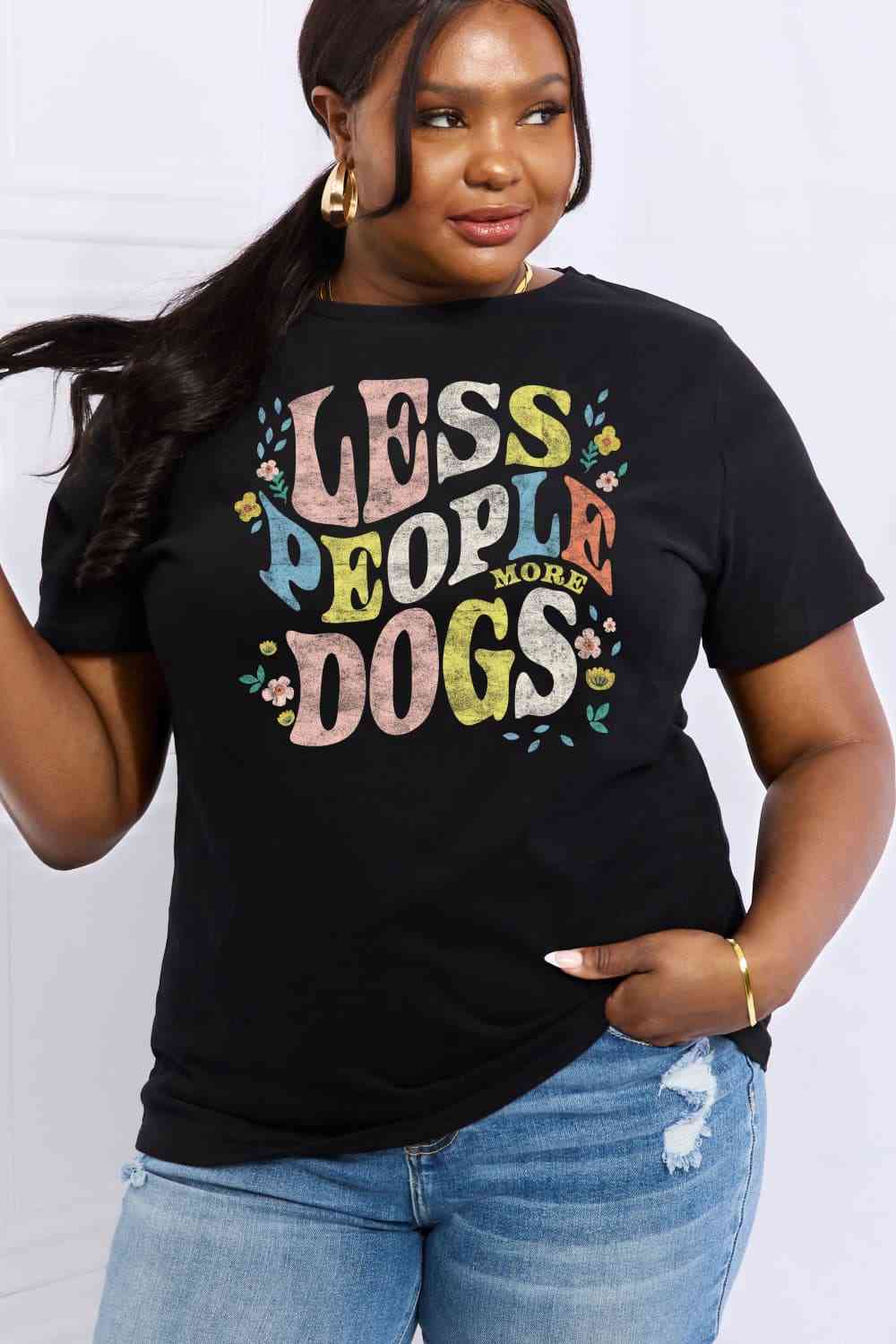 Simply Love Full Size LESS PEOPLE MORE DOGS Graphic Cotton T-Shirt