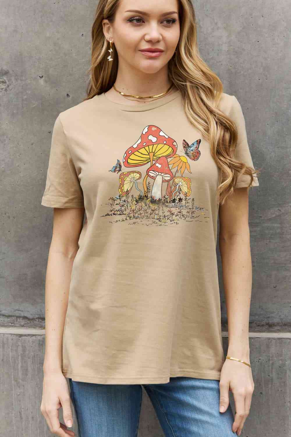 Simply Love Full Size Mushroom & Butterfly Graphic Cotton T-Shirt