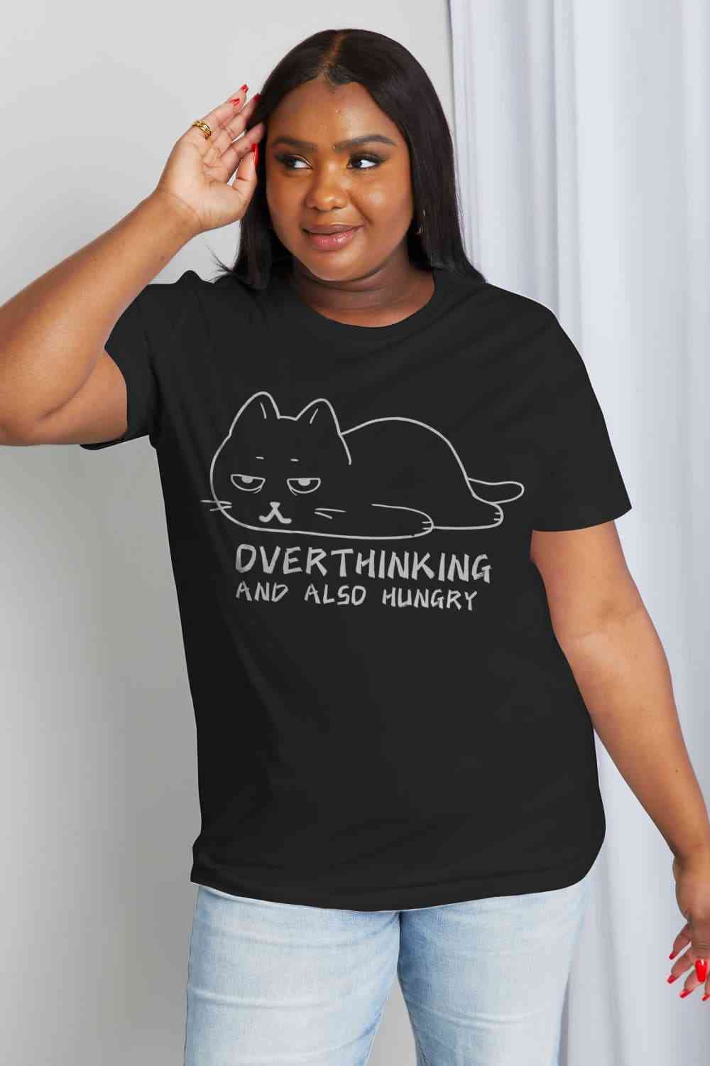 Simply Love Full Size OVERTHINKING AND ALSO HUNGRY Graphic Cotton Tee
