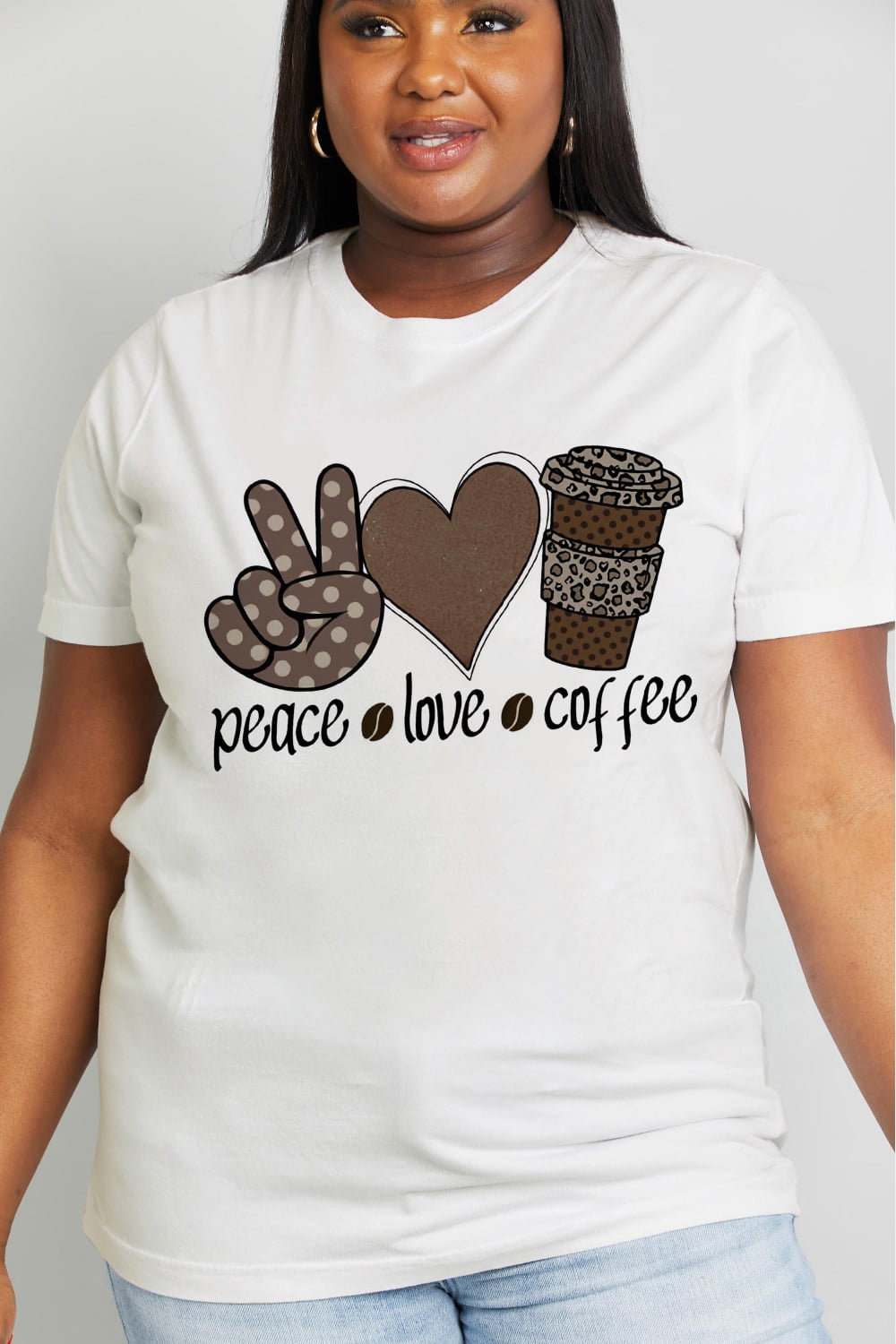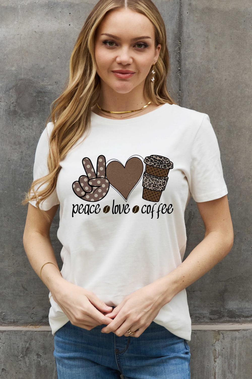 Simply Love Full Size PEACE LOVE COFFEE Graphic Cotton Tee