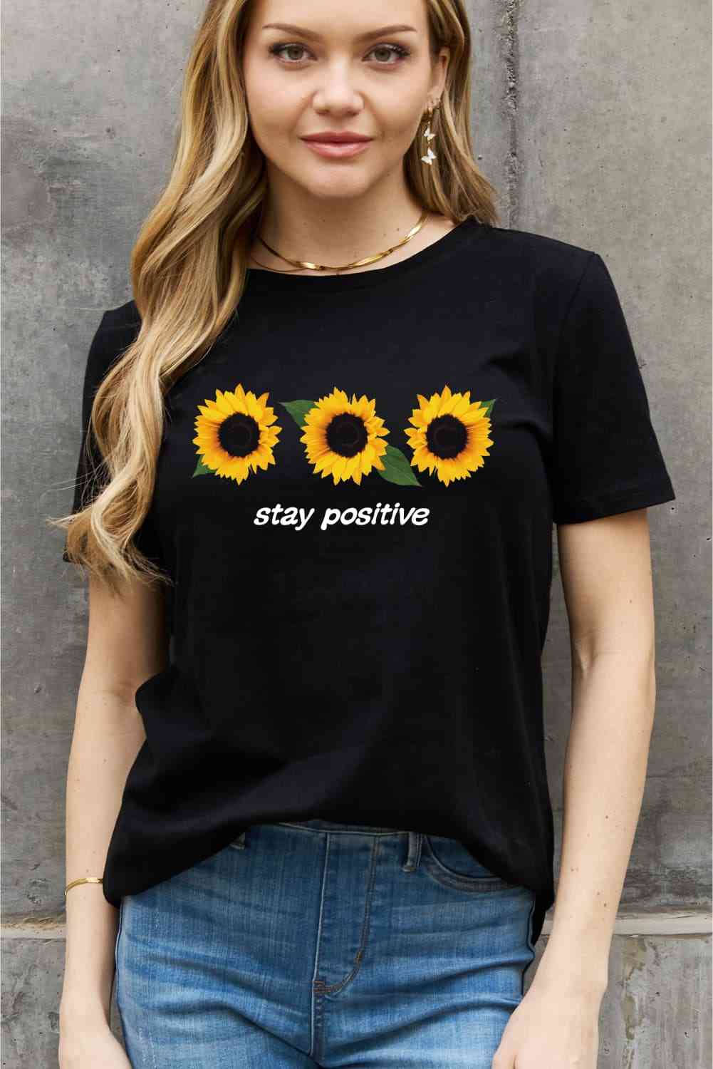 Simply Love Full Size STAY POSITIVE Sunflower Graphic Cotton Tee