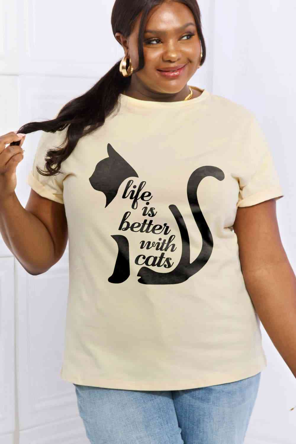 Simply Love Simply Love Full Size LIFE IS BETTER WITH CATS Graphic Cotton Tee