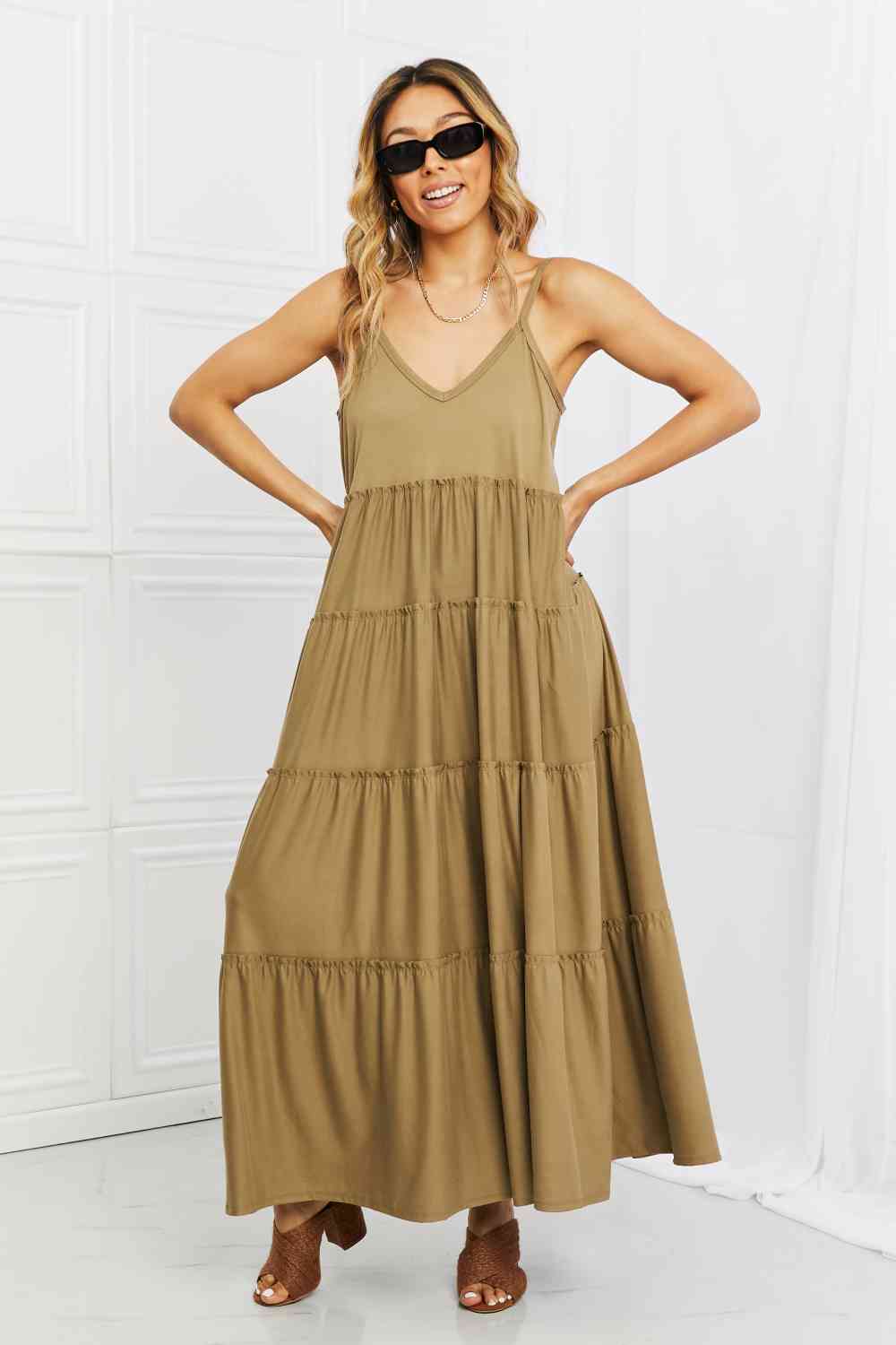 This spaghetti strap tiered dress is a casual and chic must-have for any day-to-night outfit. Featuring a tiered design, pockets, and a plunging v-neckline, pair with sandals and a cross-body bag for effortless style.